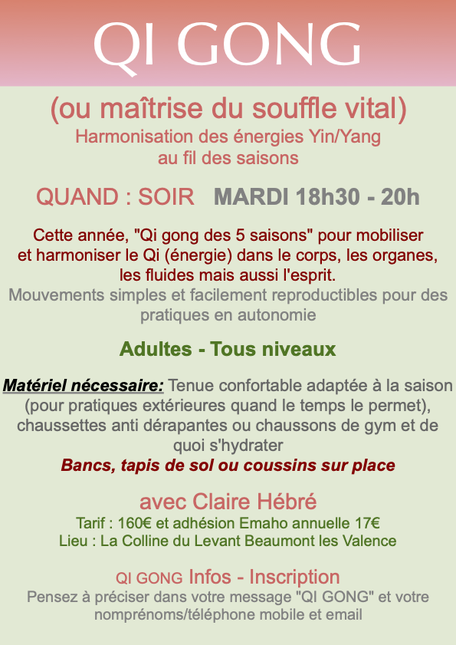 "Apaisement et recentrage pour moi. J'ai beaucoup apprécié tes conseils diététiques, le Qi gong et Do In"