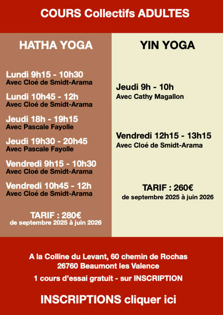 De vos pratiques émergeront calme mental, souplesse, une joie sereine, une plus grande adaptabilité aux expériences de la vie ...